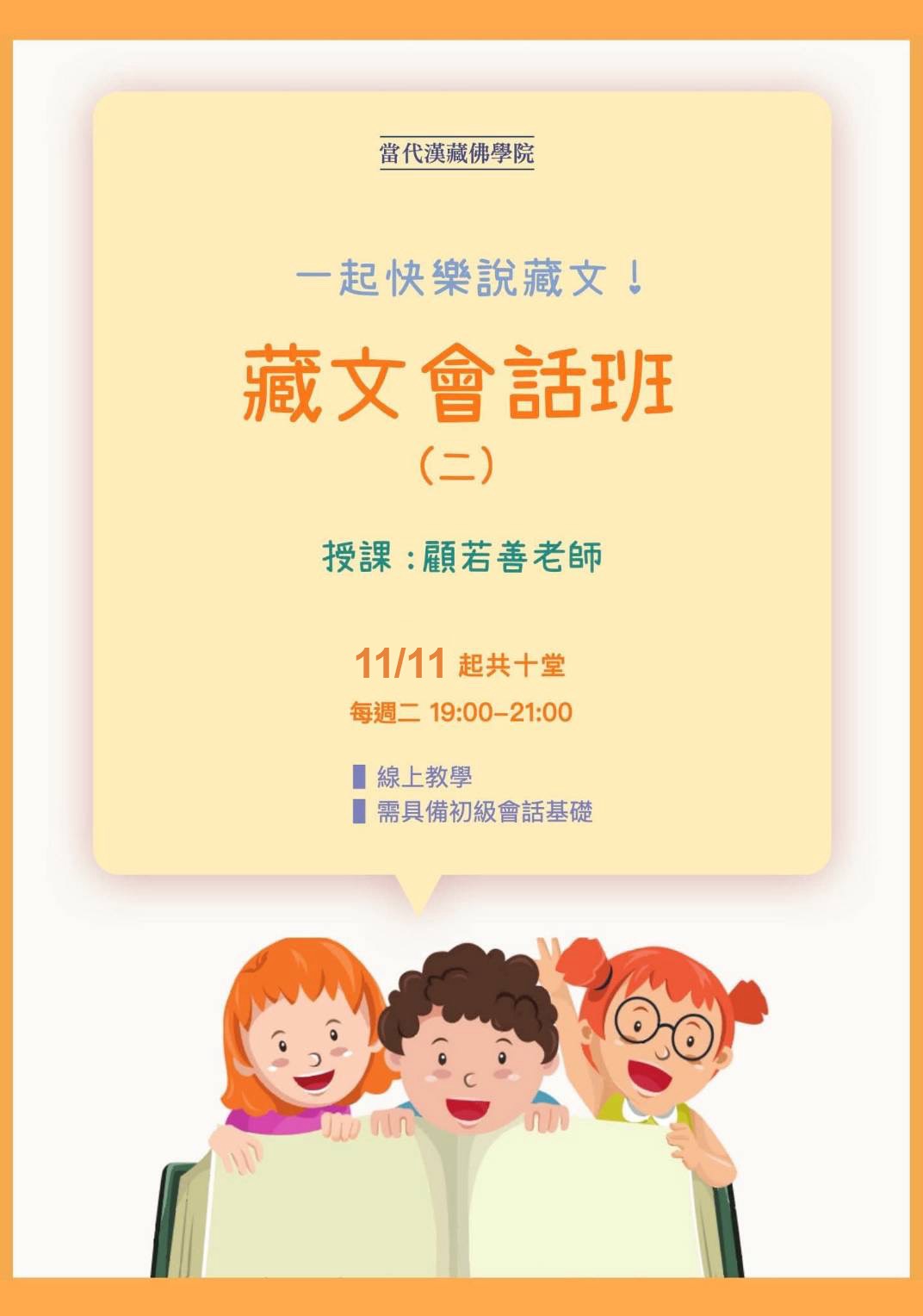 11/11起 【藏文會話班(二)】將開課,請即報名
